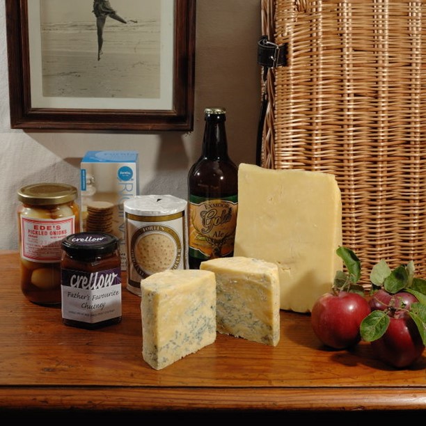 Our range of cheese gift boxes is now joined by four hampers - sets of cheese with carefully chosen accompaniments, all packed into a wicker hamper. This gives us the chance to showcase beautiful groups of cheeses along with some of the really good biscuits, chutneys, pickles, wines, beers and so on, which we’ve gathered together.