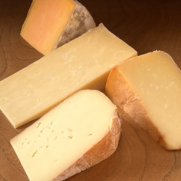 A nice little quartet for you here, with a cheddar as the centrepiece (Westcombe Cheddar) plus two stars of the shop counter - Merry Wyfe and Devon Smoake - rounded off with a personal favourite of mine in the form of Pennard Red (goat).