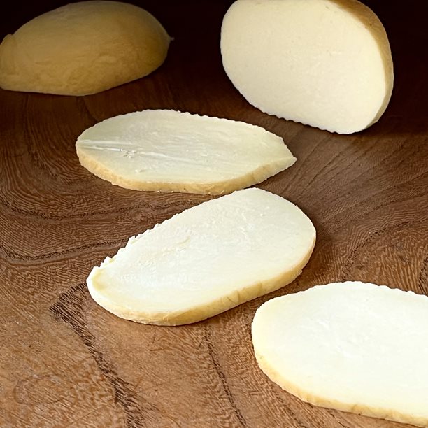 The Italians have a cheese style they call pasta filata - which means ‘stretched curd’. Freshly made curds are shredded into small pieces, then boiled, before being stirred back into one smooth mass. Lumps are then stretched out and formed into small balls.