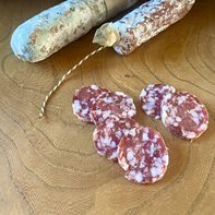 Shropshire Salumi is a small company based north of Shrewsbury making handmade small batch charcuterie the traditional way. Will Macken takes a pride in the quality of their ingedients, their methods and 'nose to tail' ethos. Only locally reared traditional breeds are used (Gloucester Old Spot, Oxford Sandy and Black), and Will is very keen that welfare standards are high in the farms he deals with. About 180g each.